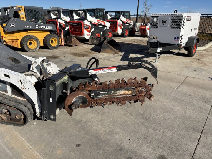 Package deal includes LT112 Bobcat Trencher (s/n 045202639) and 38′ Bobcat Tiller (s/n 614400904).